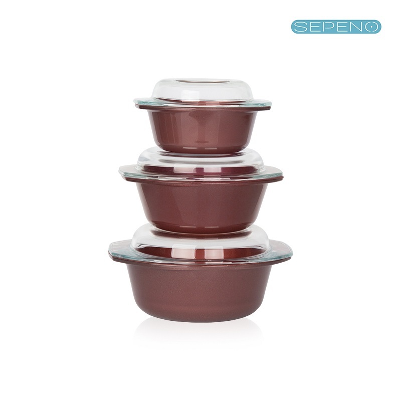 - 3 قابلمه پیرکس با سایزهای 18 و 22 و 26 سانتی متر