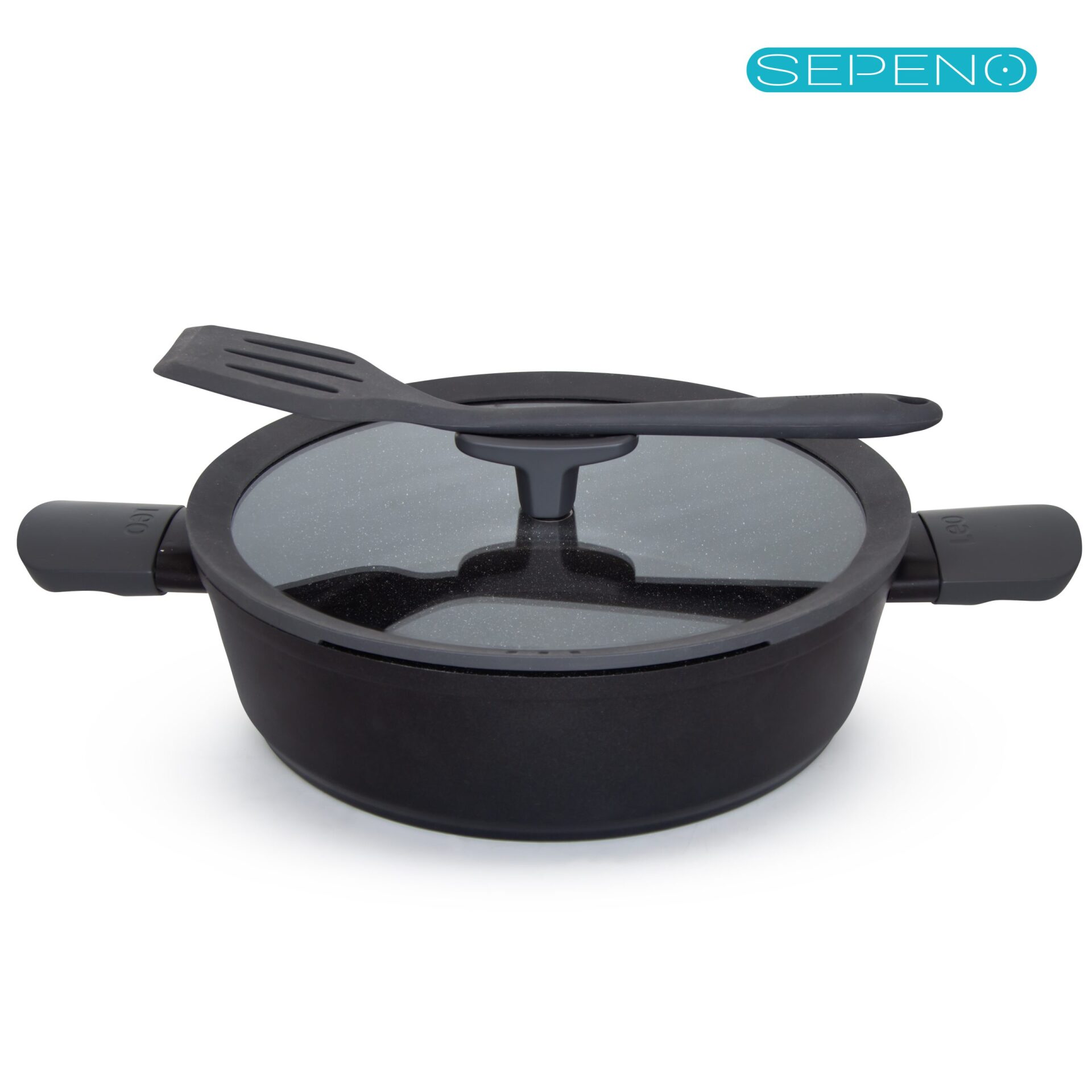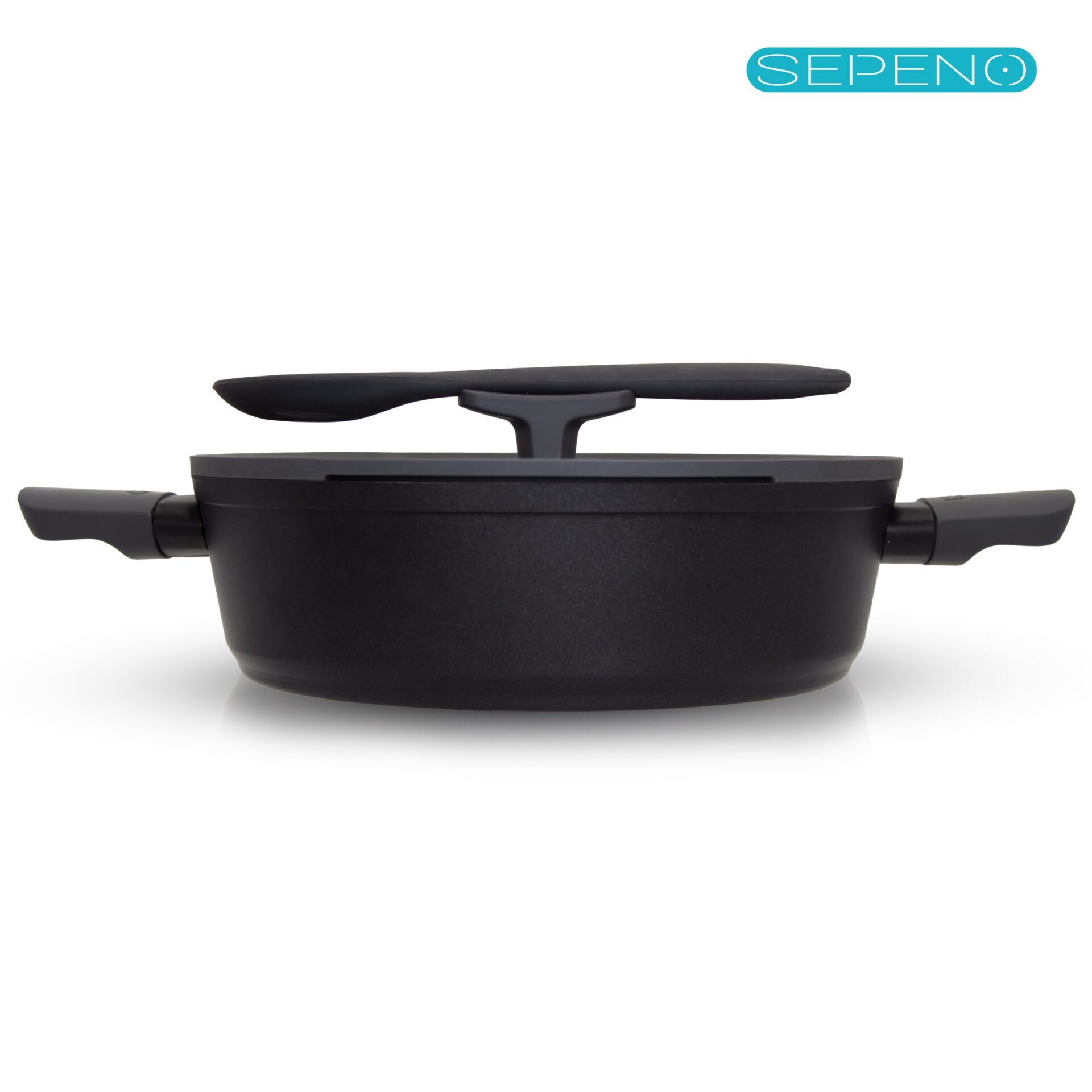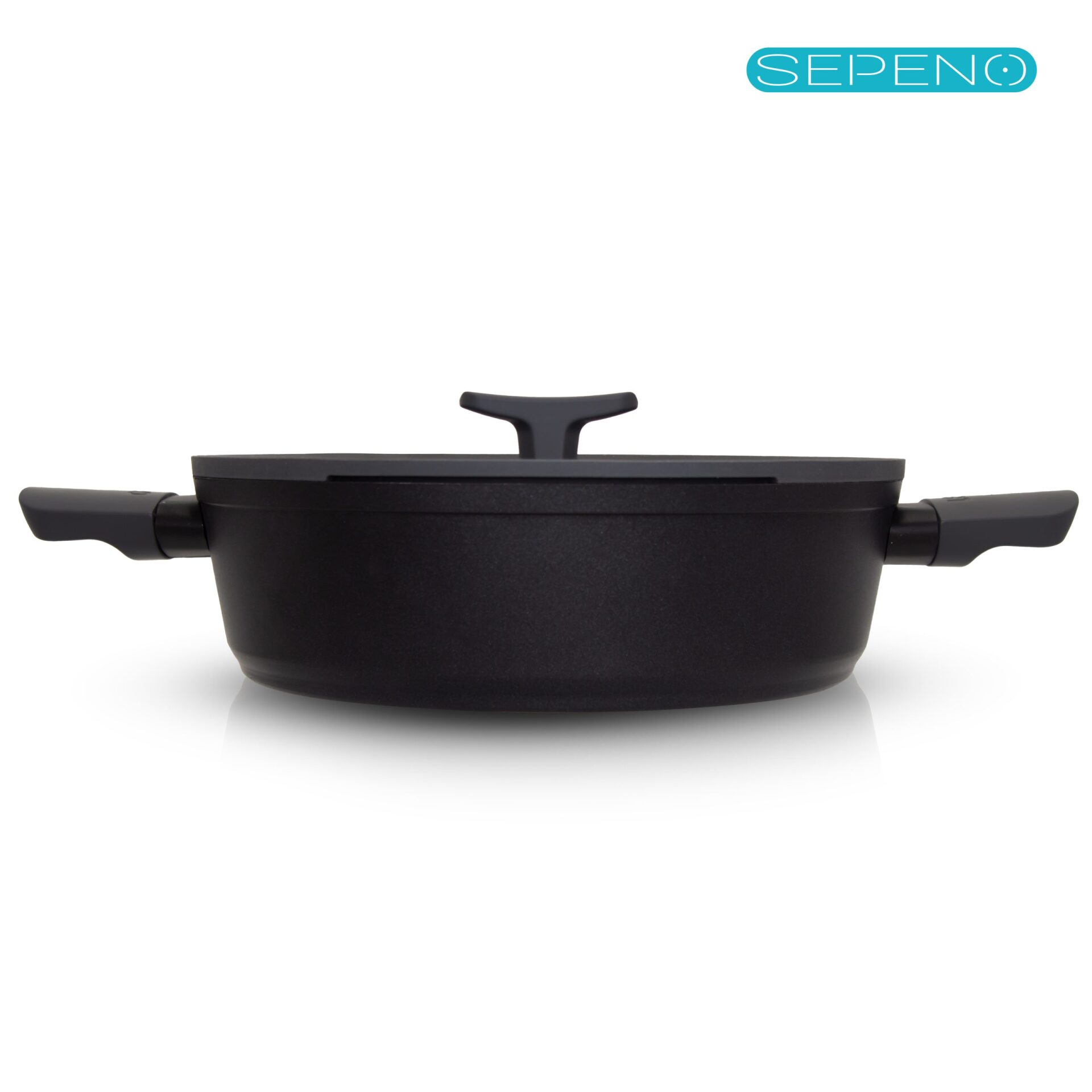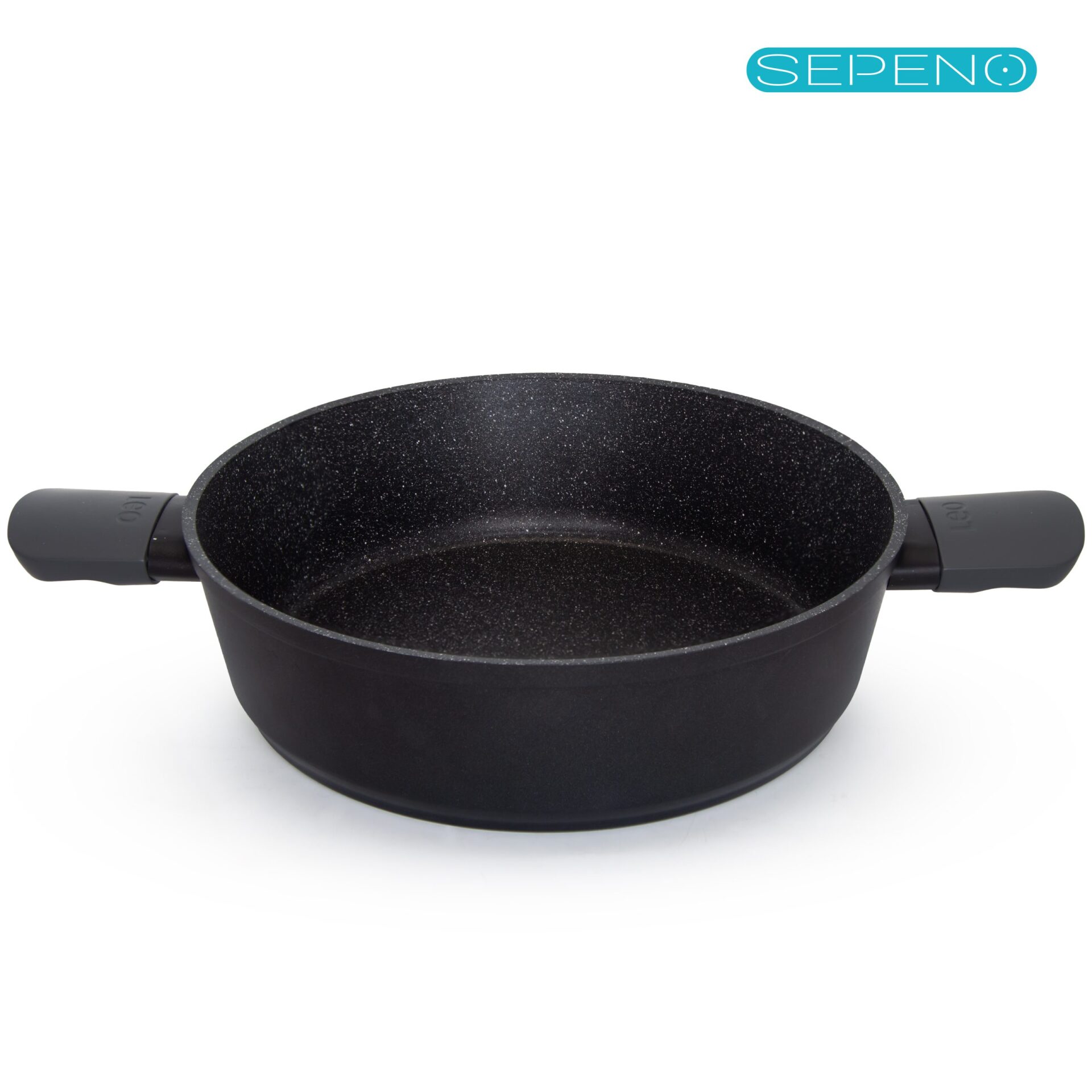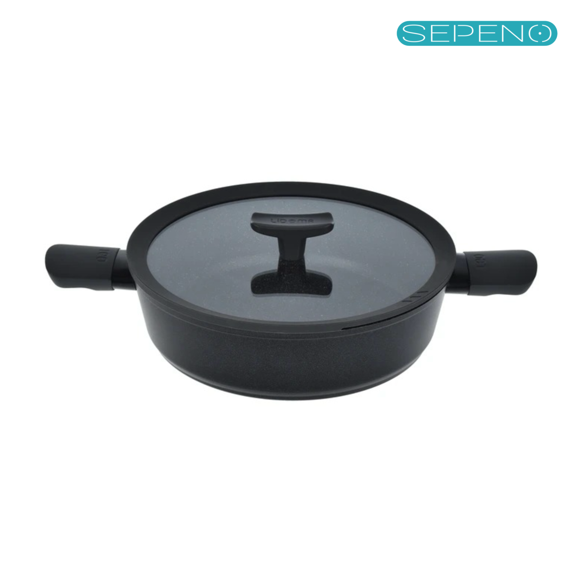 یک تابه حرفه ای آشپزخانه نچسب با روکش دو رو گرانیت فوق العاده به همراه درب با سایز 28 سانتی متر