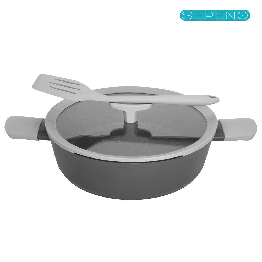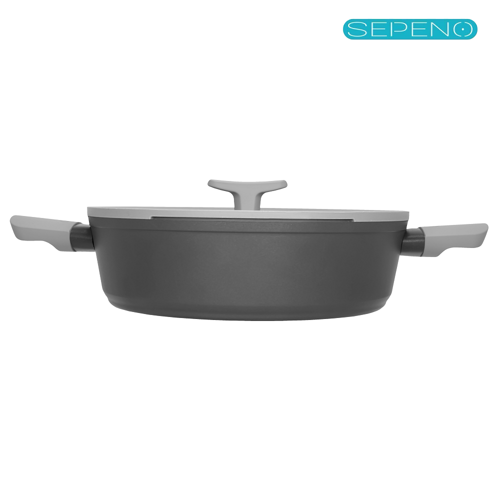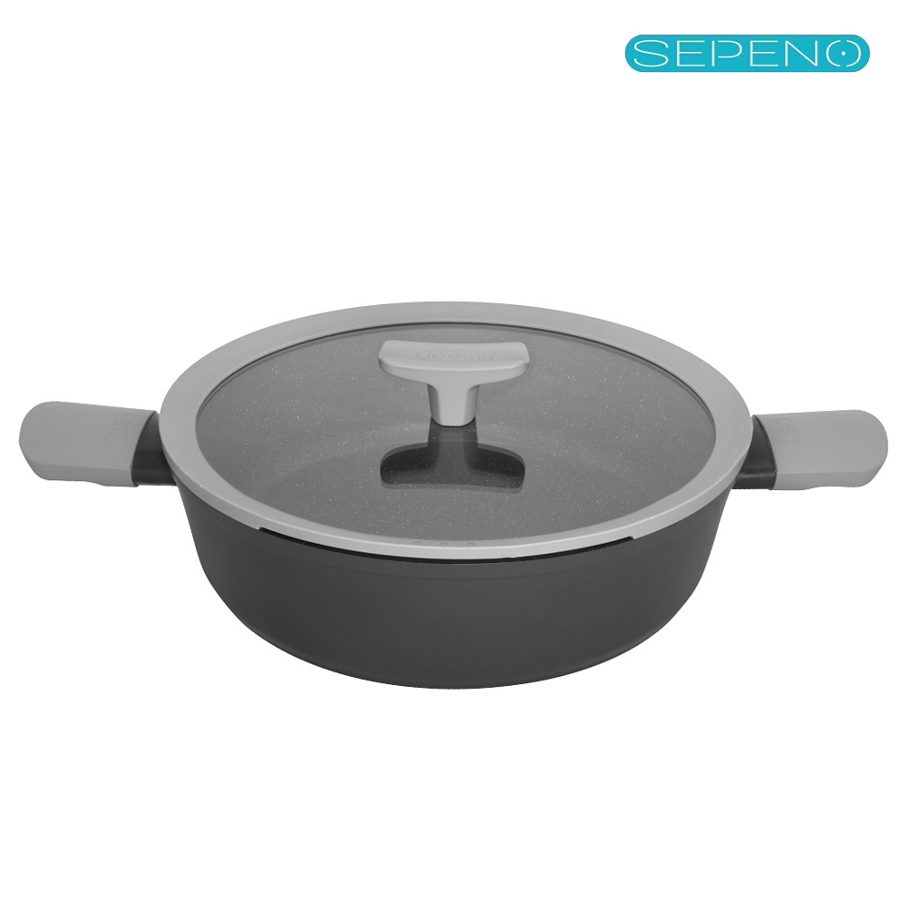 یک تابه حرفه ای آشپزخانه نچسب با روکش دو رو گرانیت فوق العاده به همراه درب با سایز 28 سانتی متر