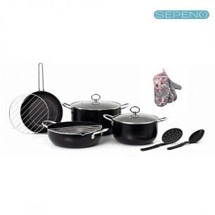 سرویس قابلمه 10 پارچه لیدوما مشکی با دسته نقره ای