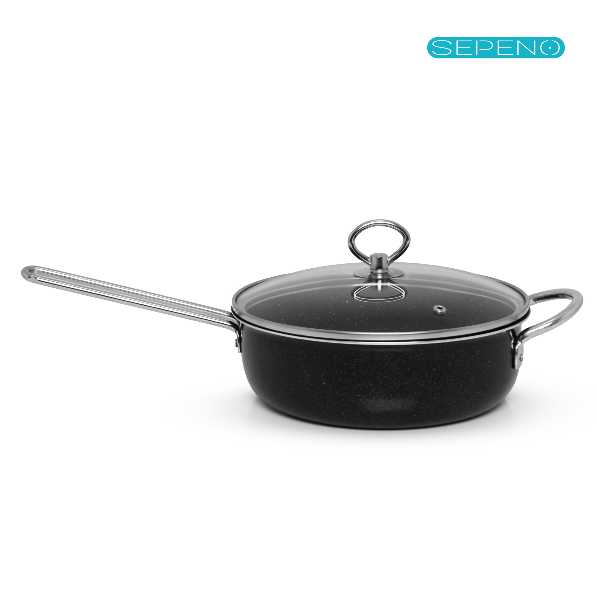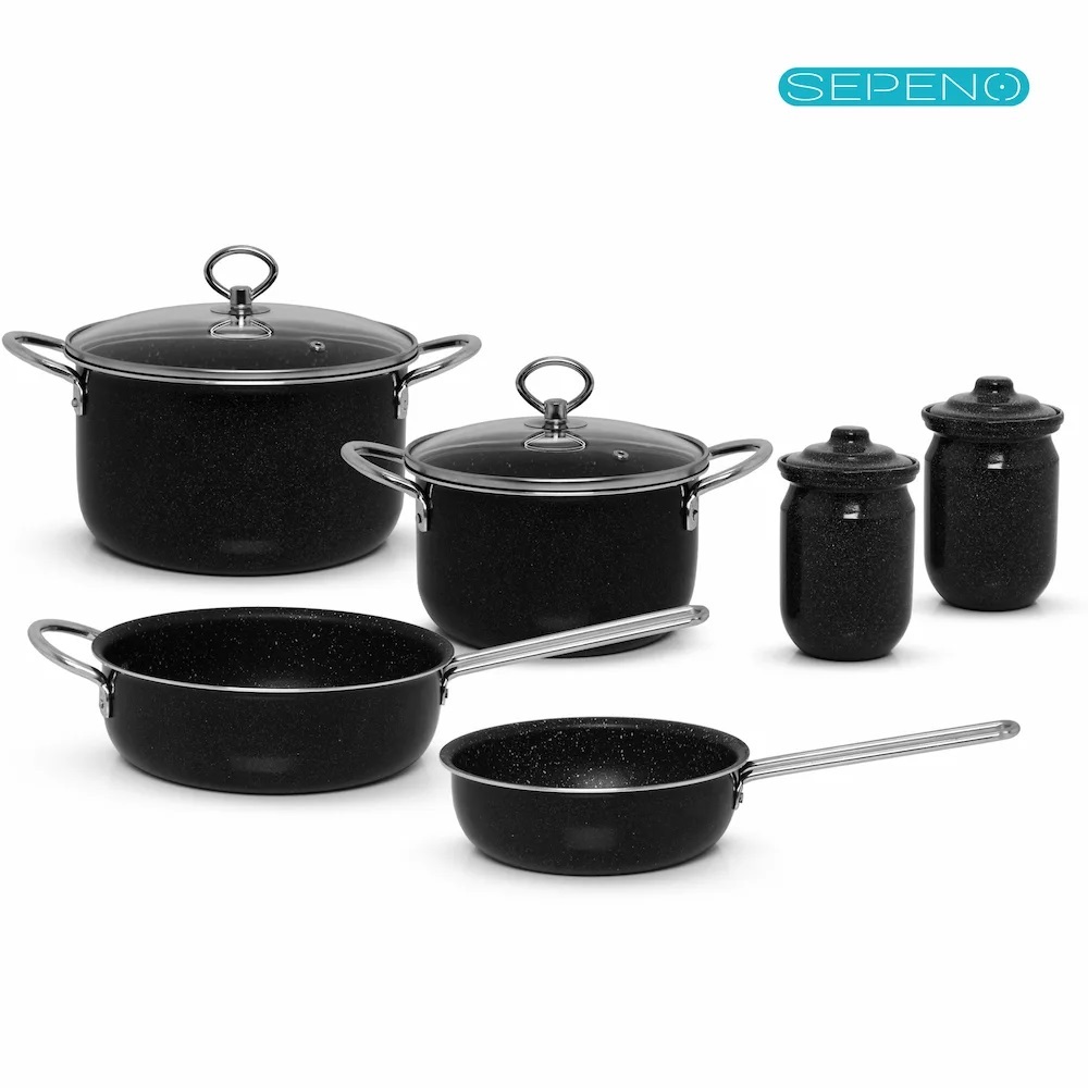 سرویس قابلمه 10 پارچه گرانیتی لیدوما مدل اکولید- ecolid – مشکی دسته نقره ای لبه دار