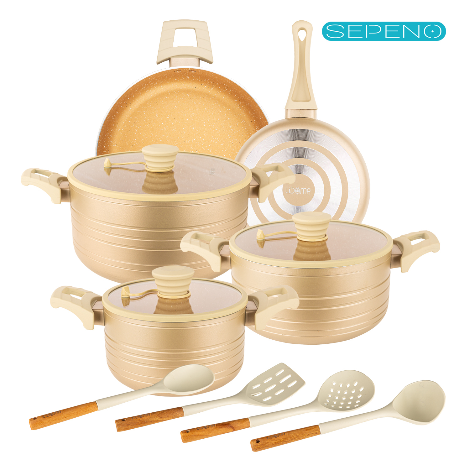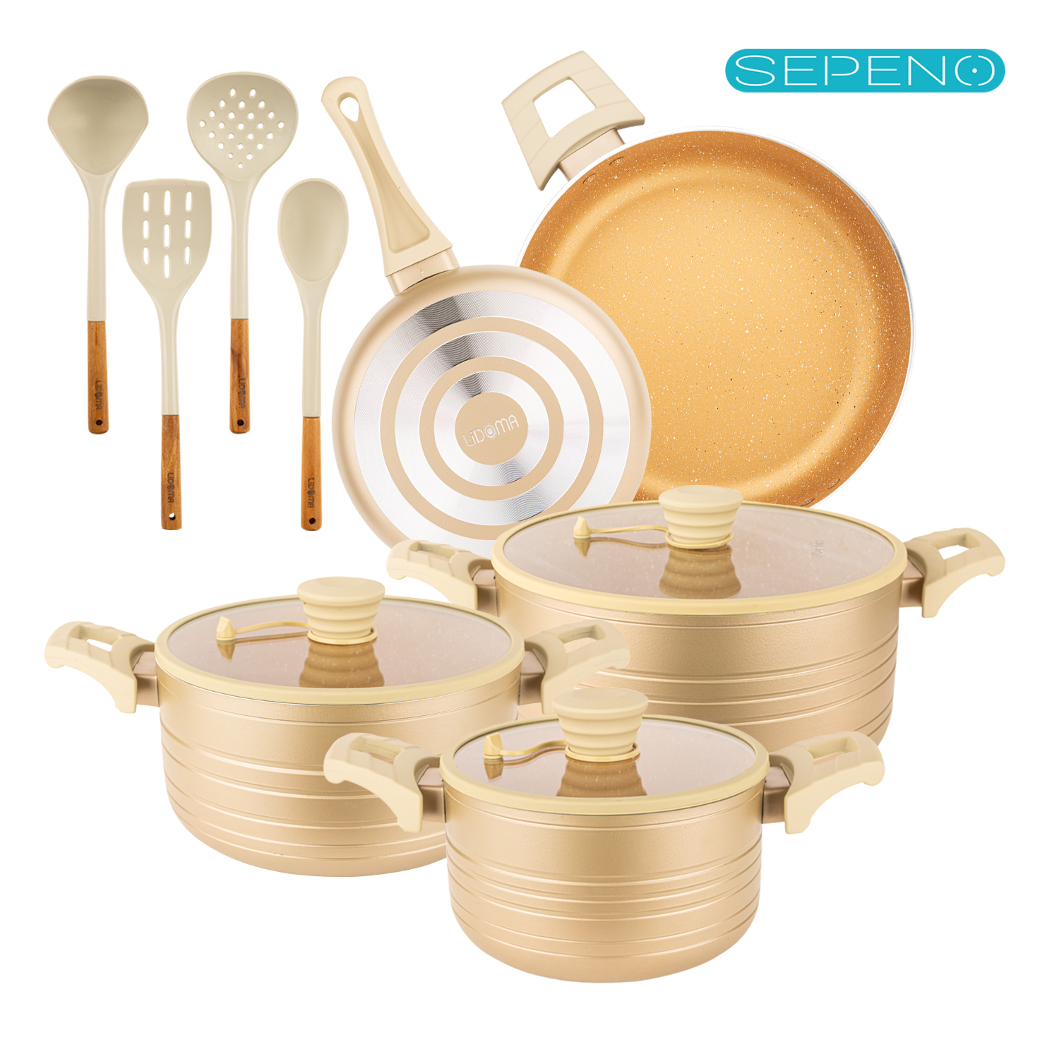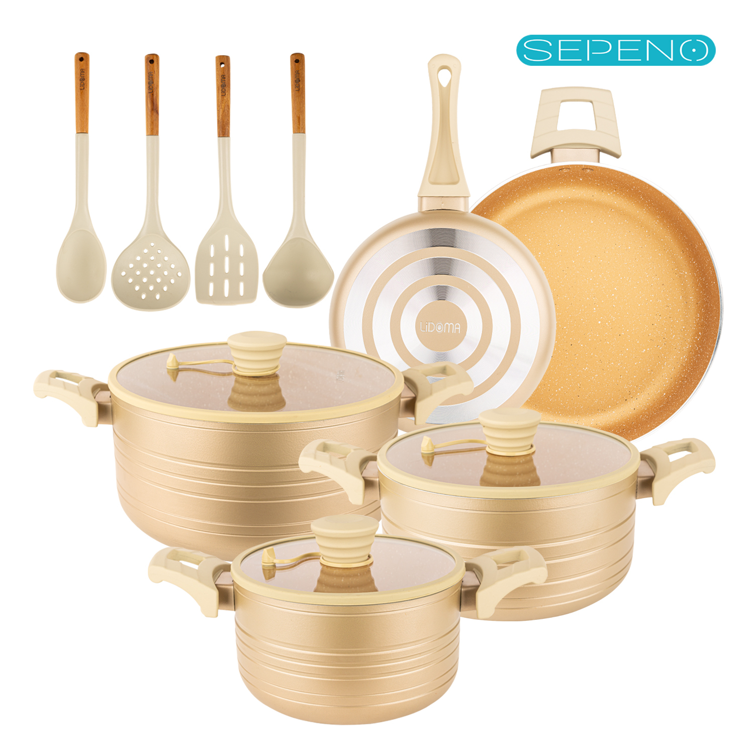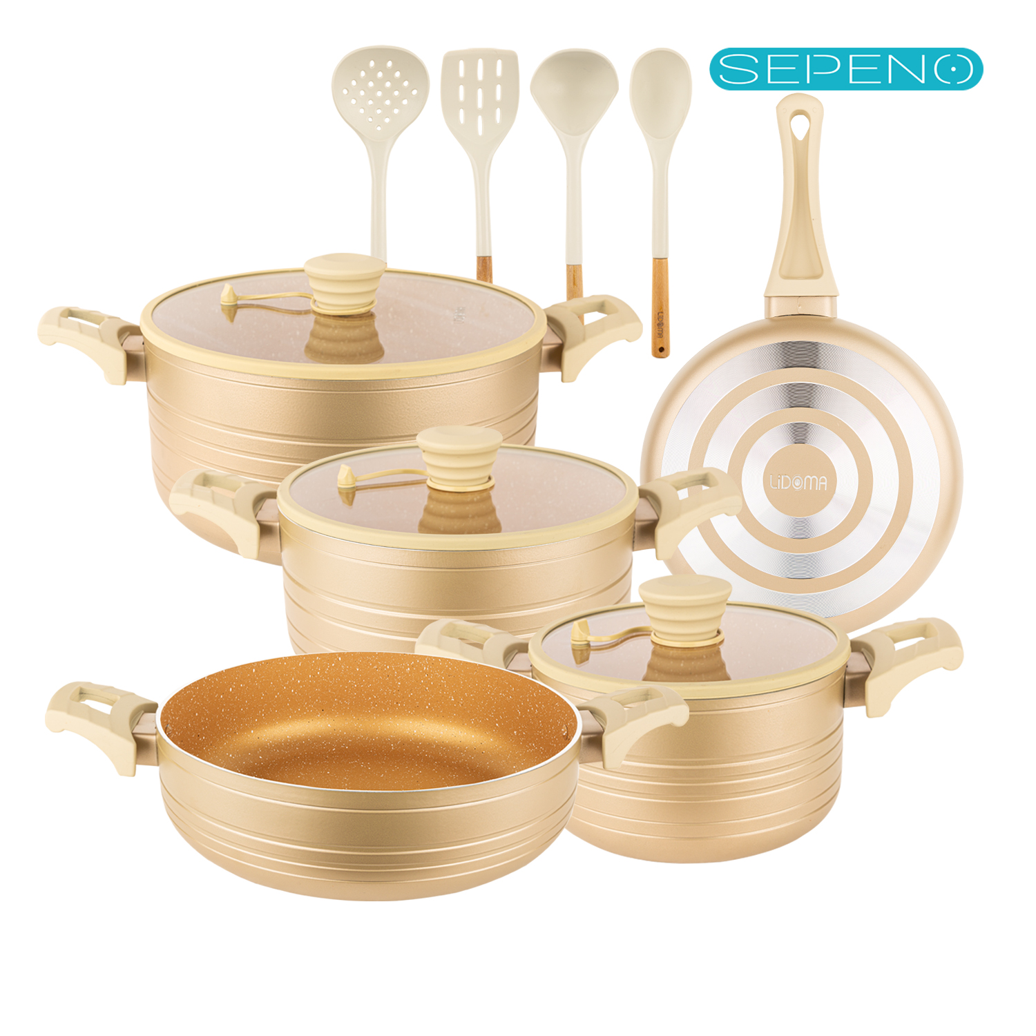 سرویس قابلمه 12 پارچه گرانیتی لیدوما با درب سیلیکونی مدل ویلیا V2 (وی2)
