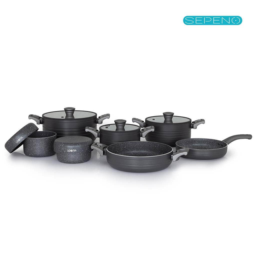 سرویس قابلمه 12 پارچه گرانیتی لیدوما با درب سیلیکونی مدل ویلیا - نوک مدادی
