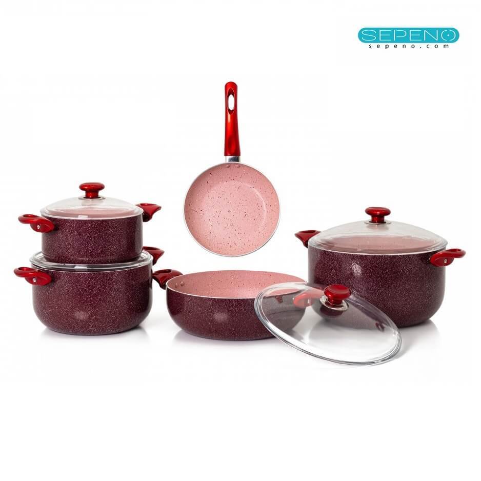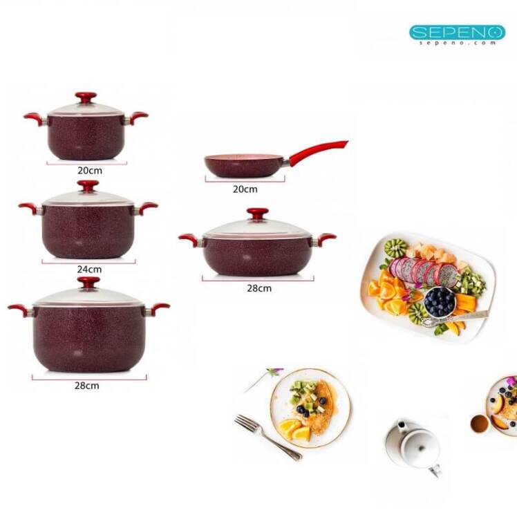 سرویس قابلمه 9 پارچه لیدوما قرمز صادراتی با دسته باکالیت قرمز