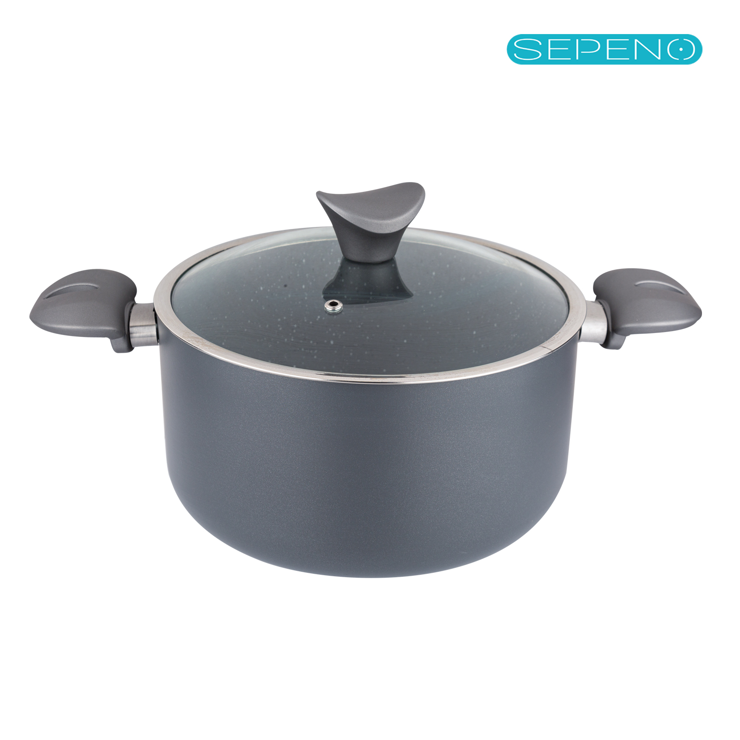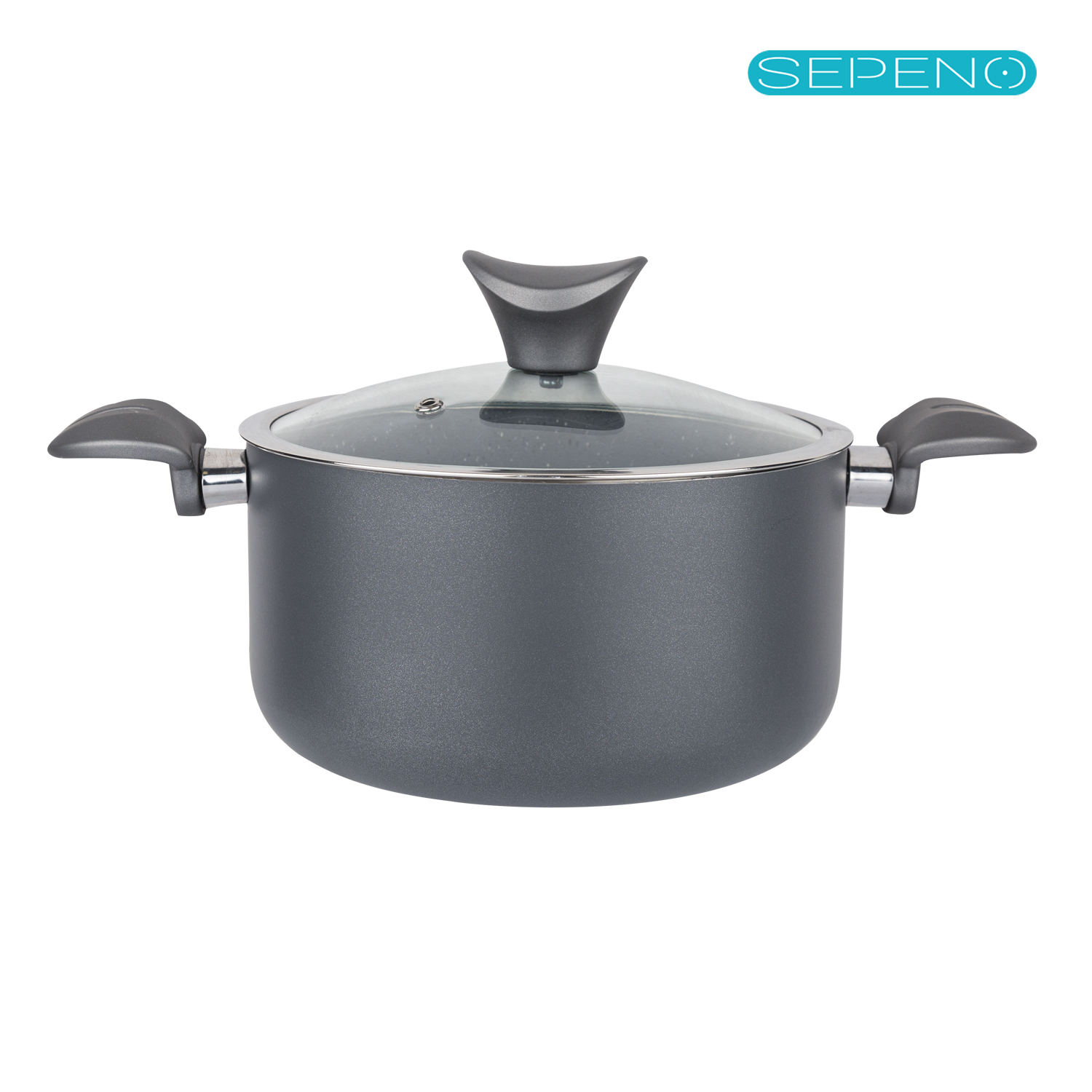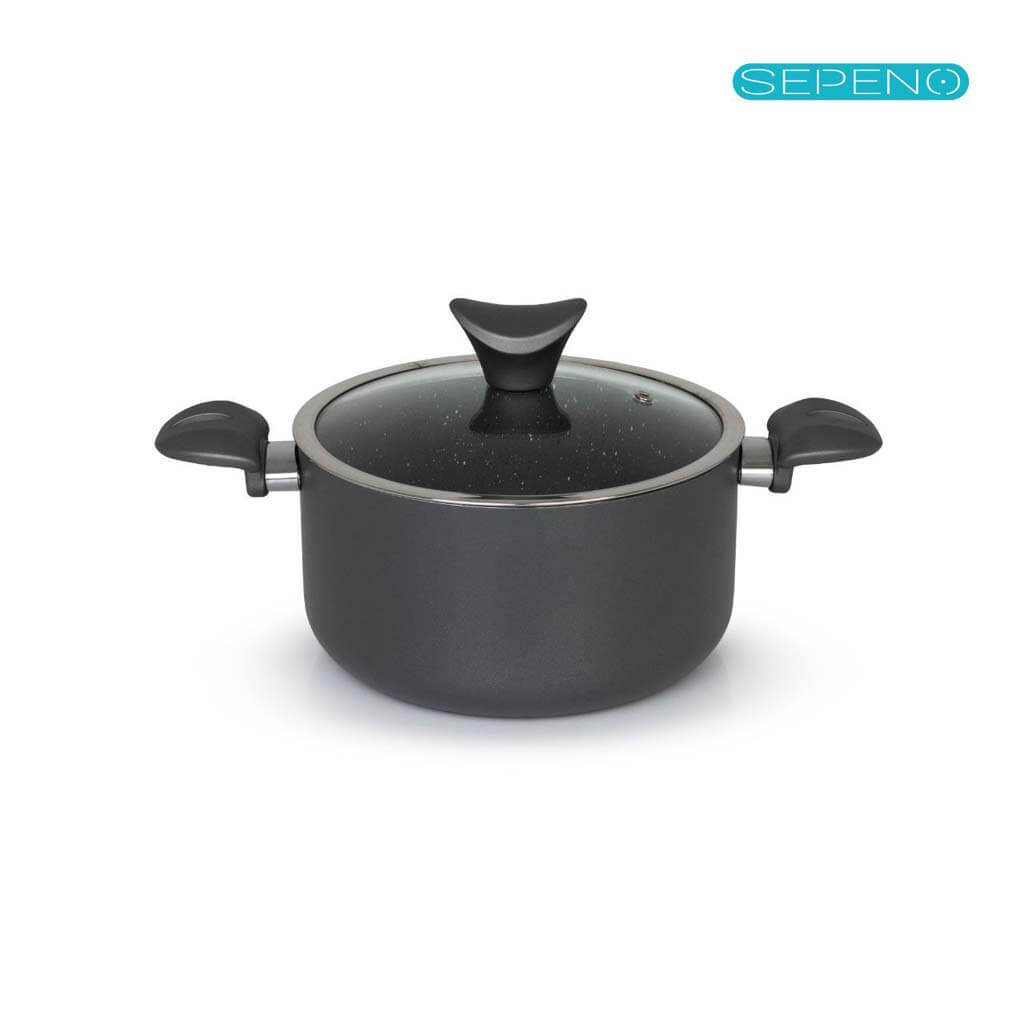 بدنه قابلمه لیدوما مدل الکترا از آلومینیوم فشرده ساخته شده که علاوه بر وزن مناسب، باعث انتقال سریع و یکنواخت حرارت میشود. این ویژگی کمک میکند تا غذا بهطور یکنواخت پخته شود و از سوختگی یا نیمپز شدن آن جلوگیری شود. پوشش داخلی گرانیتی نچسب، مانع از چسبیدن غذا به سطح ظرف شده و امکان پخت سالم با کمترین میزان روغن را فراهم میکند.