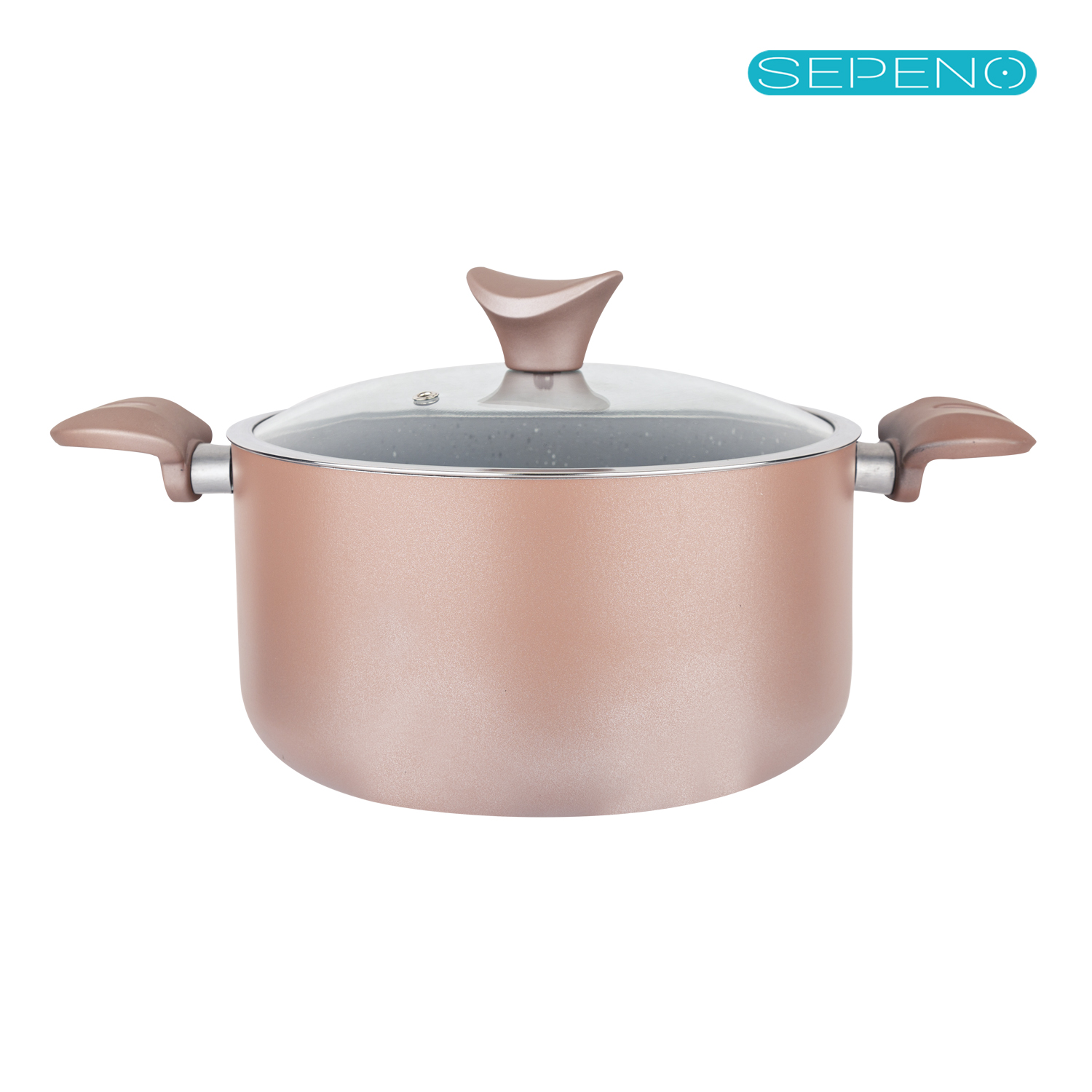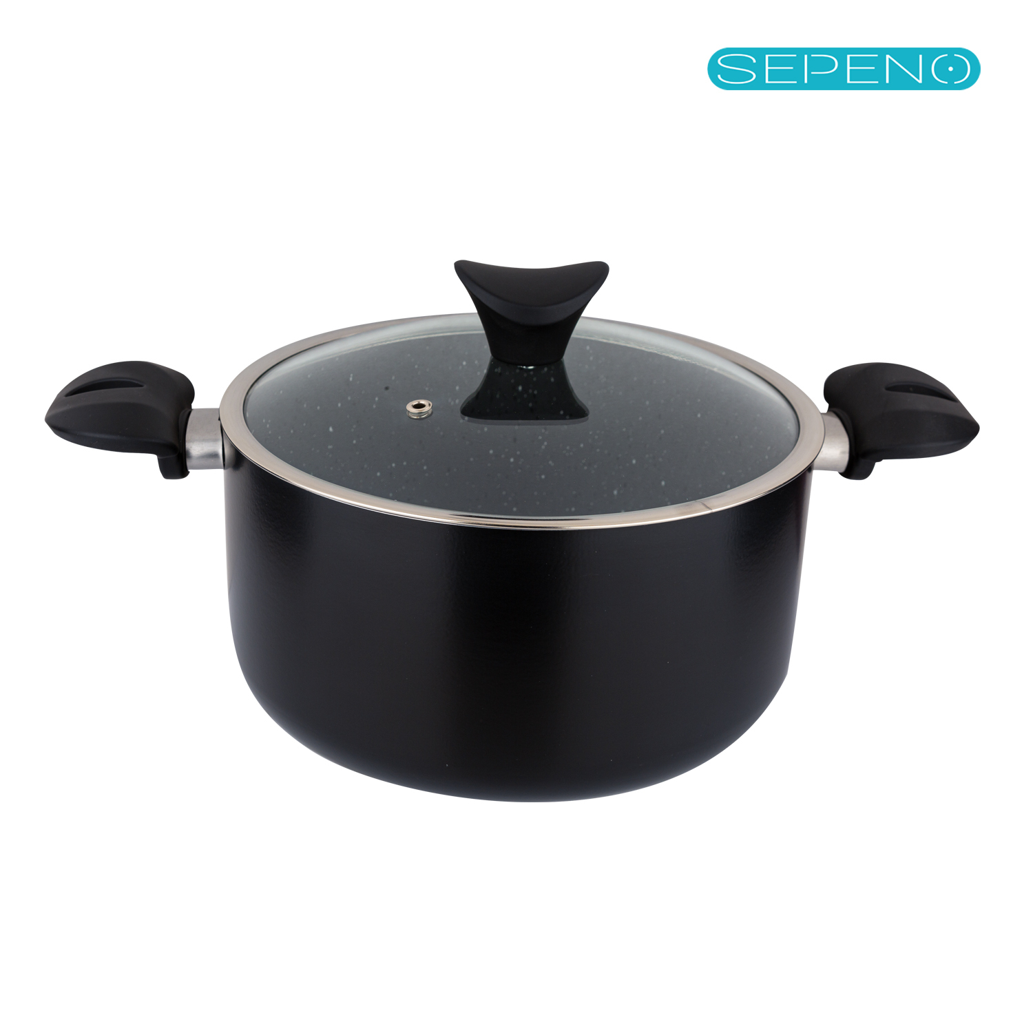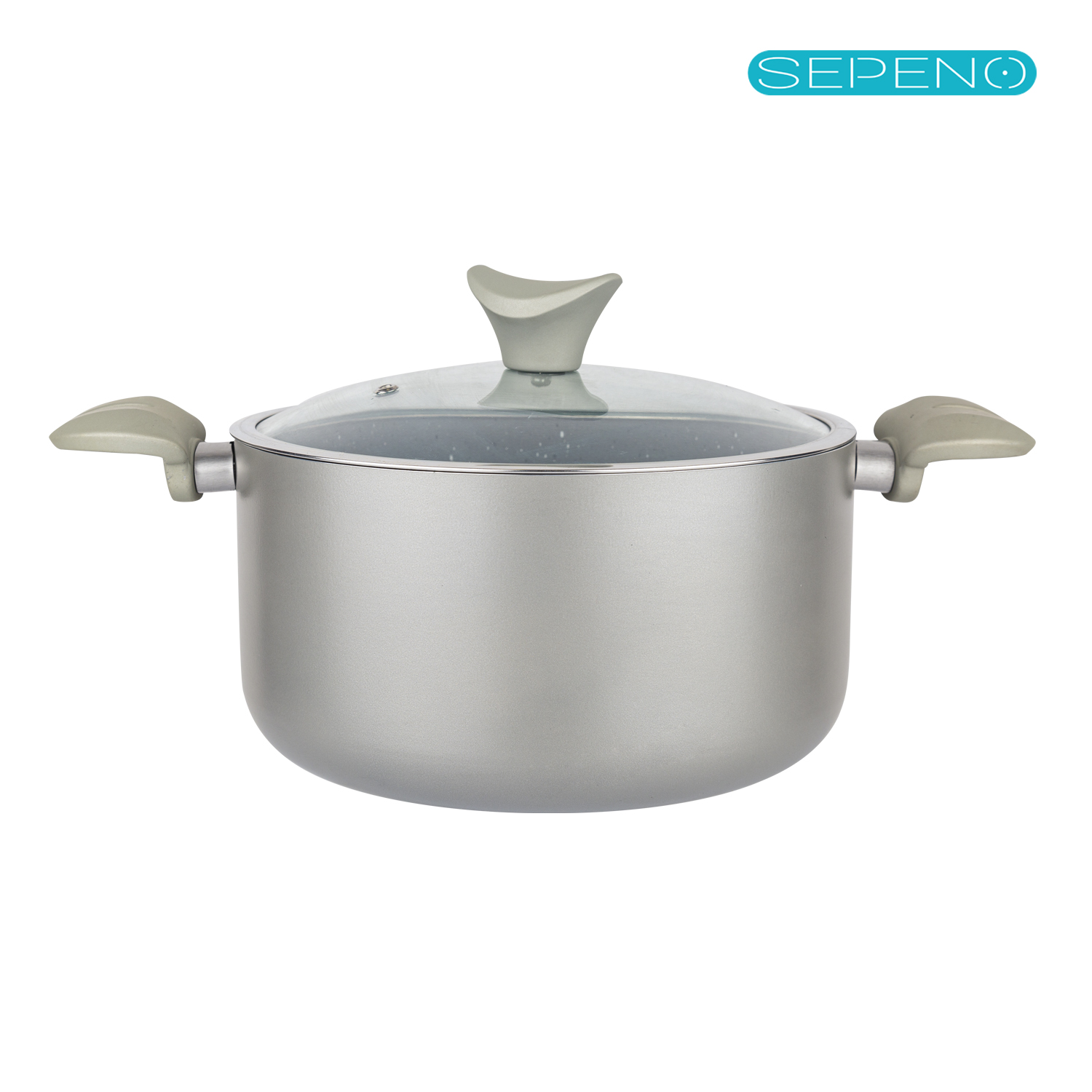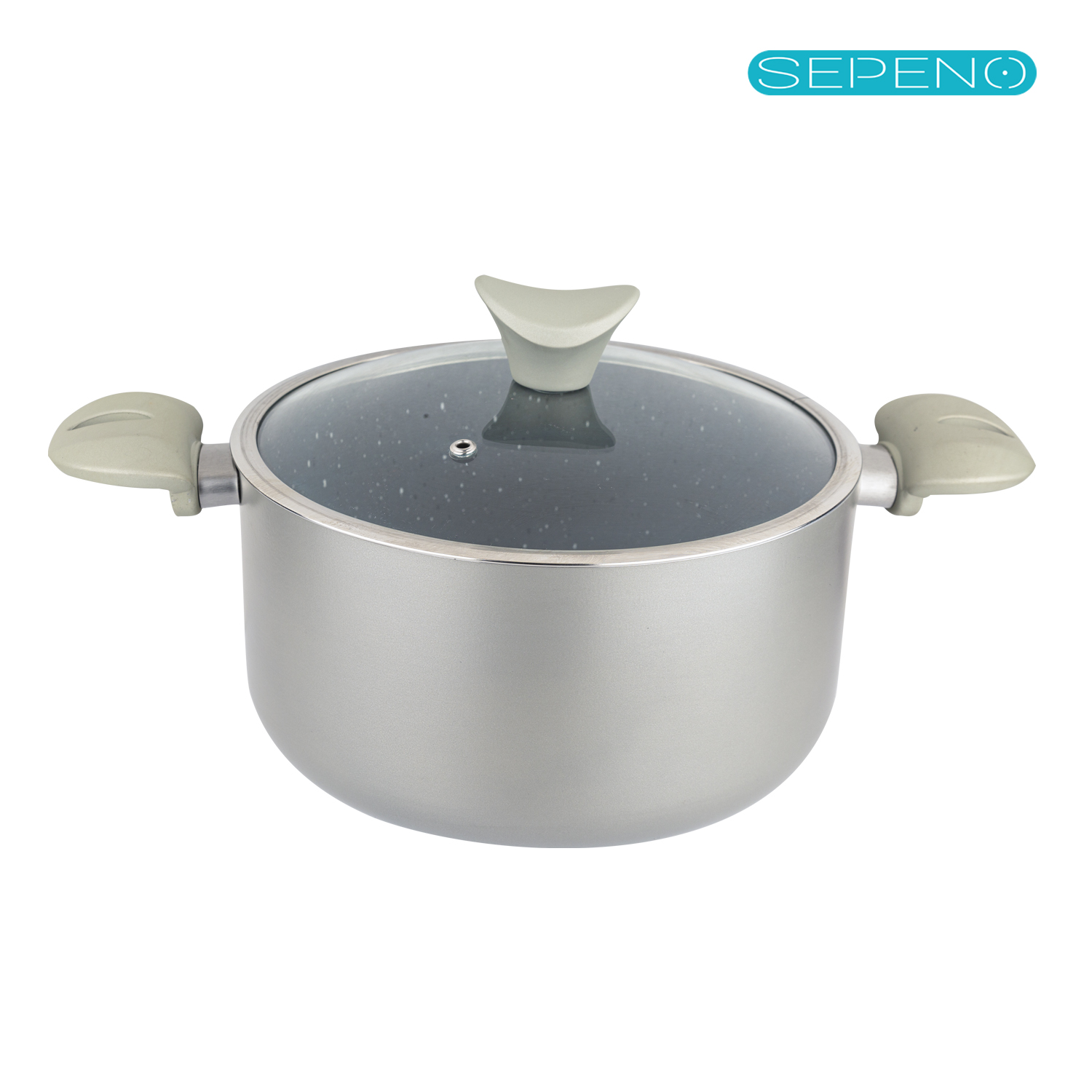 بدنه قابلمه لیدوما مدل الکترا از آلومینیوم فشرده ساخته شده که علاوه بر وزن مناسب، باعث انتقال سریع و یکنواخت حرارت میشود. این ویژگی کمک میکند تا غذا بهطور یکنواخت پخته شود و از سوختگی یا نیمپز شدن آن جلوگیری شود. پوشش داخلی گرانیتی نچسب، مانع از چسبیدن غذا به سطح ظرف شده و امکان پخت سالم با کمترین میزان روغن را فراهم میکند.