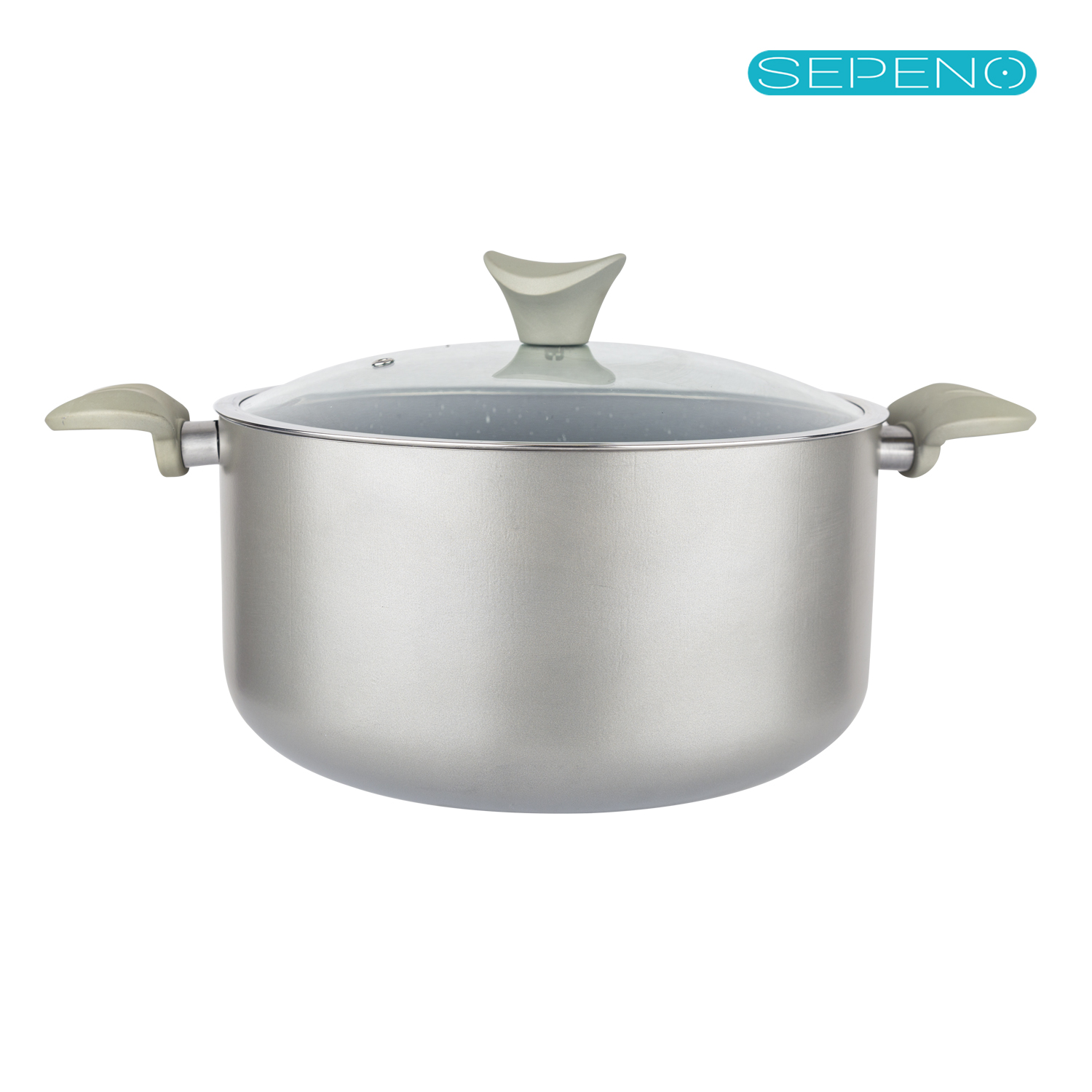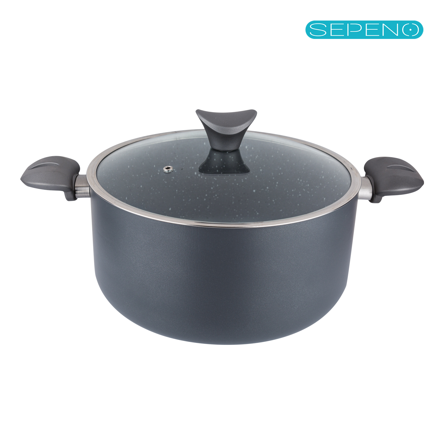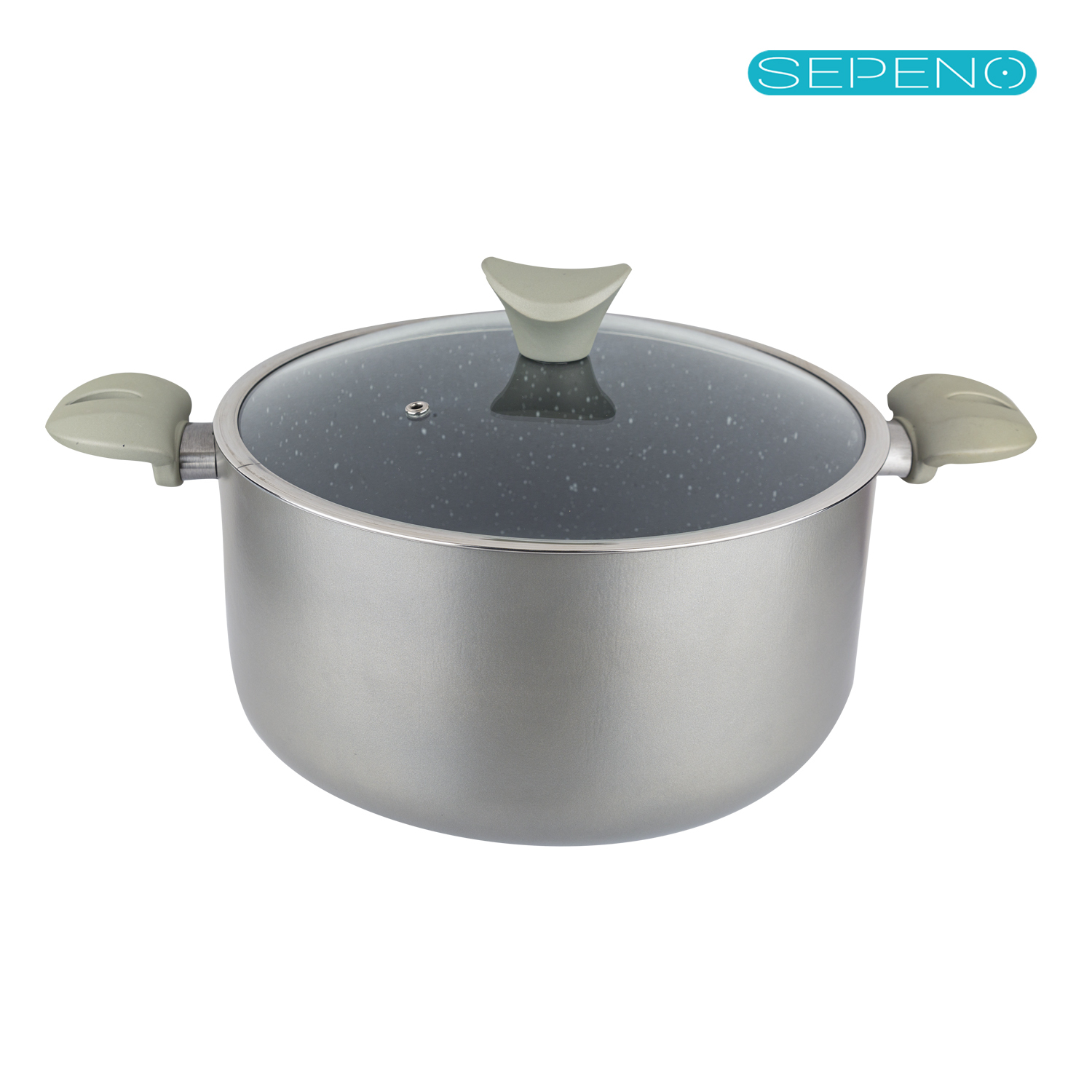بدنه قابلمه لیدوما مدل الکترا از آلومینیوم فشرده ساخته شده که علاوه بر وزن مناسب، باعث انتقال سریع و یکنواخت حرارت میشود. این ویژگی کمک میکند تا غذا بهطور یکنواخت پخته شود و از سوختگی یا نیمپز شدن آن جلوگیری شود. پوشش داخلی گرانیتی نچسب، مانع از چسبیدن غذا به سطح ظرف شده و امکان پخت سالم با کمترین میزان روغن را فراهم میکند.