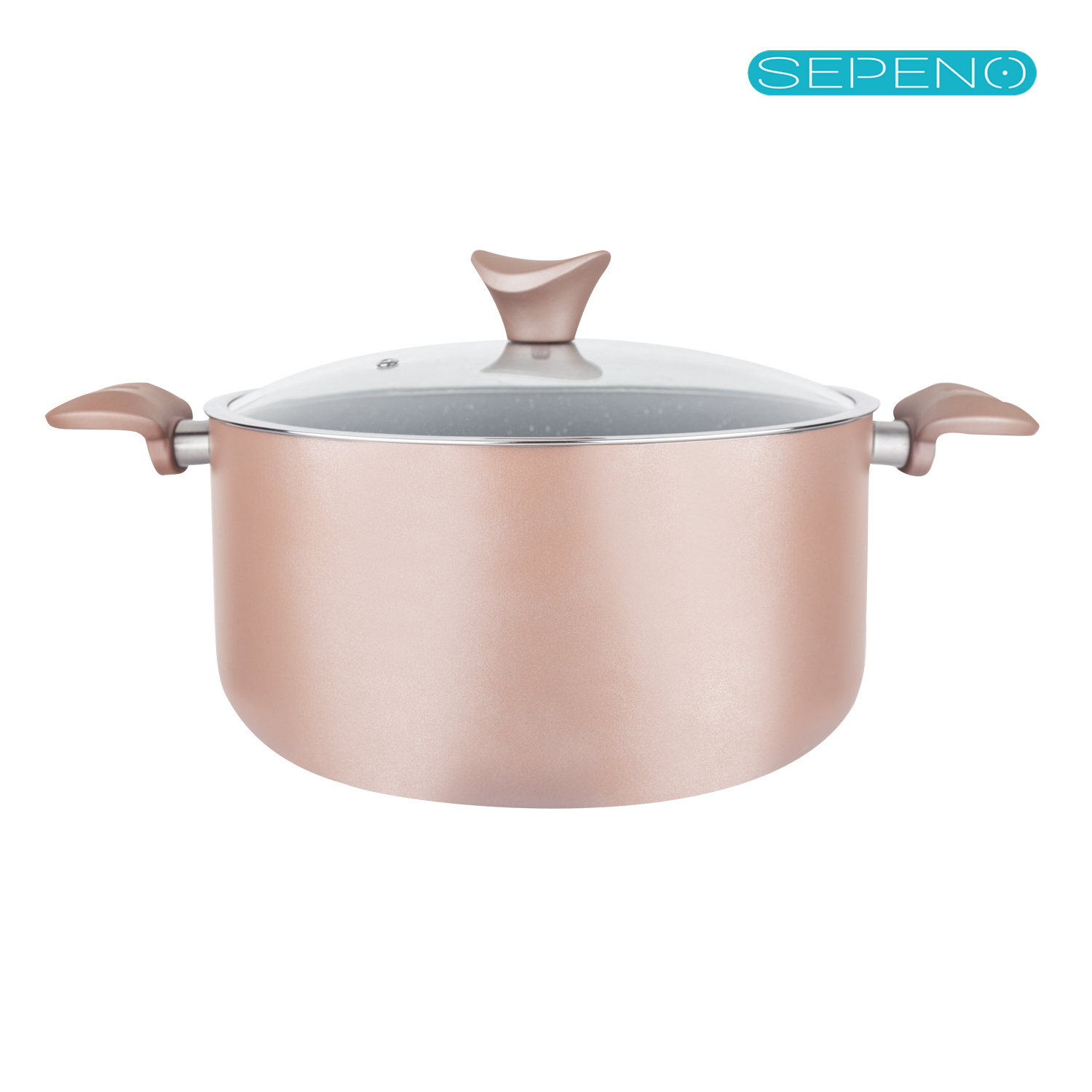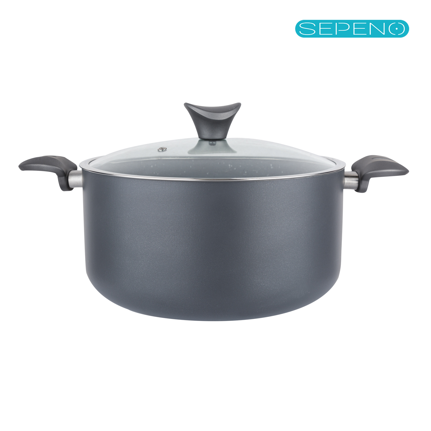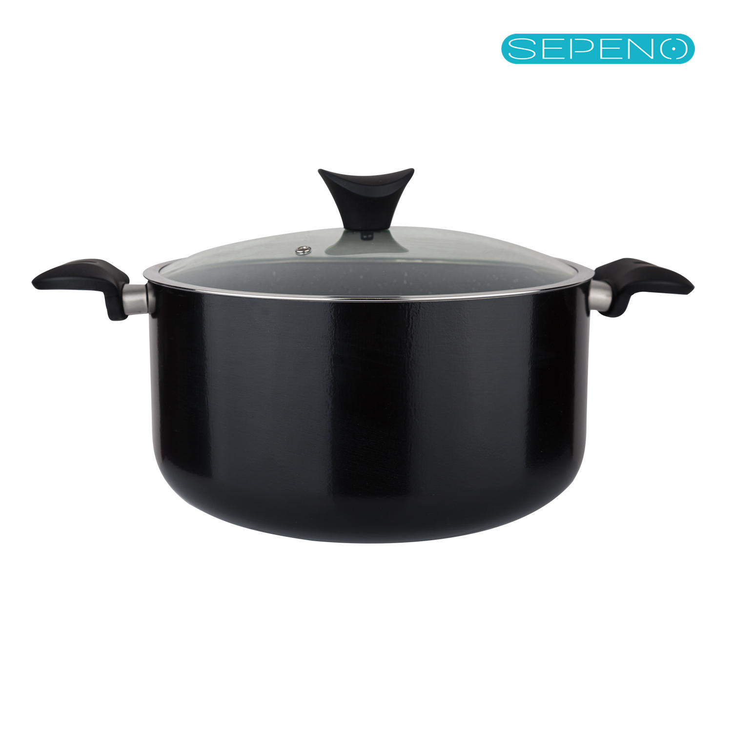بدنه قابلمه لیدوما مدل الکترا از آلومینیوم فشرده ساخته شده که علاوه بر وزن مناسب، باعث انتقال سریع و یکنواخت حرارت میشود. این ویژگی کمک میکند تا غذا بهطور یکنواخت پخته شود و از سوختگی یا نیمپز شدن آن جلوگیری شود. پوشش داخلی گرانیتی نچسب، مانع از چسبیدن غذا به سطح ظرف شده و امکان پخت سالم با کمترین میزان روغن را فراهم میکند.