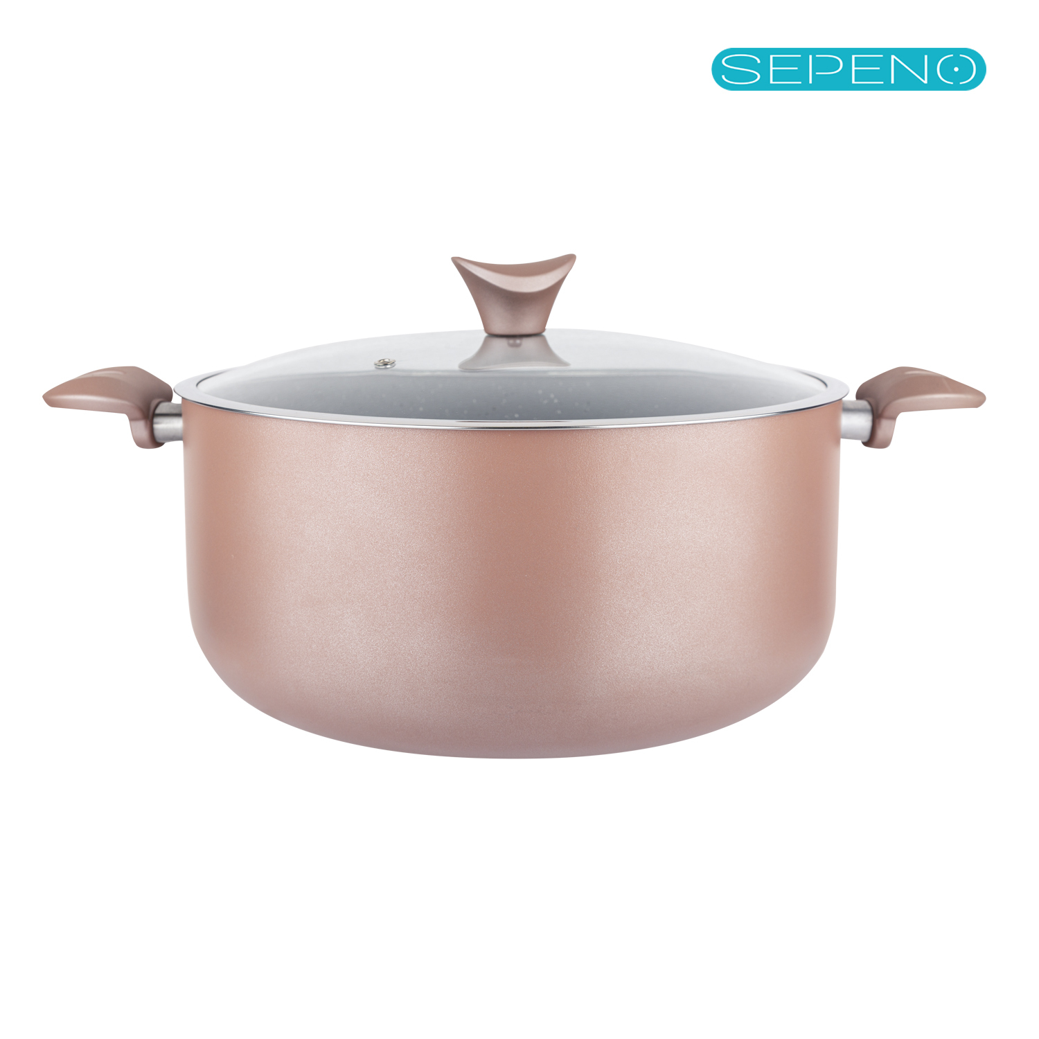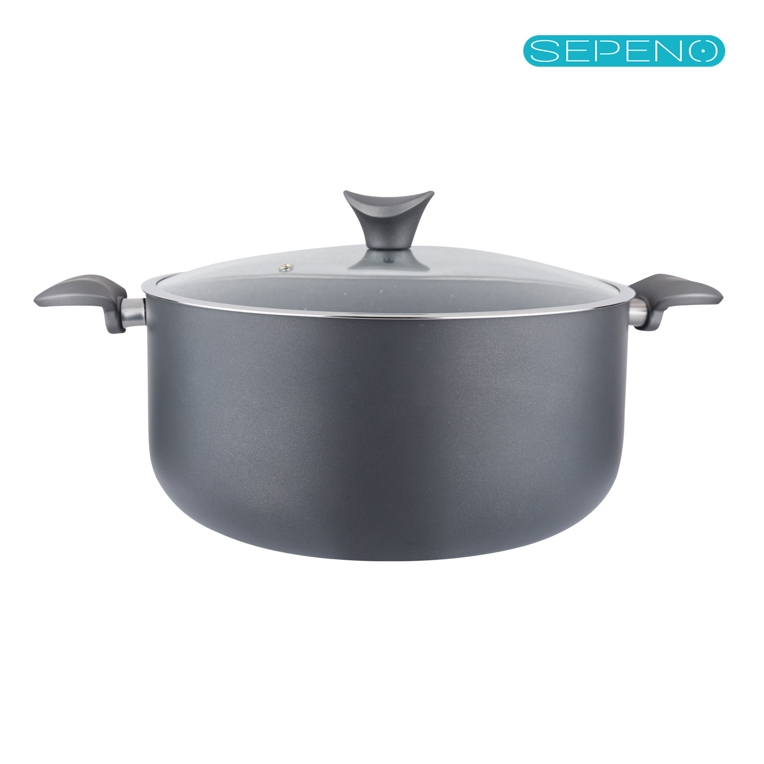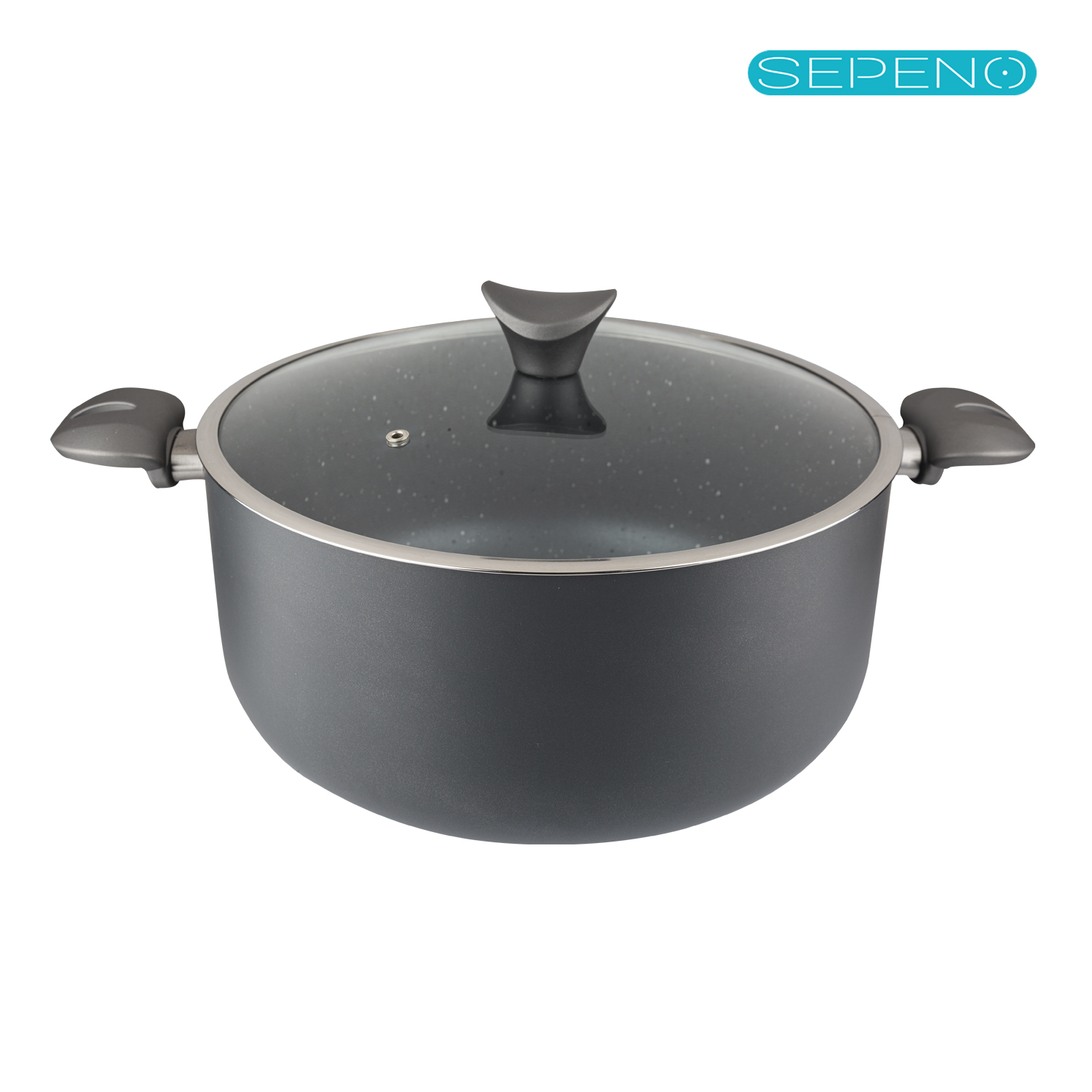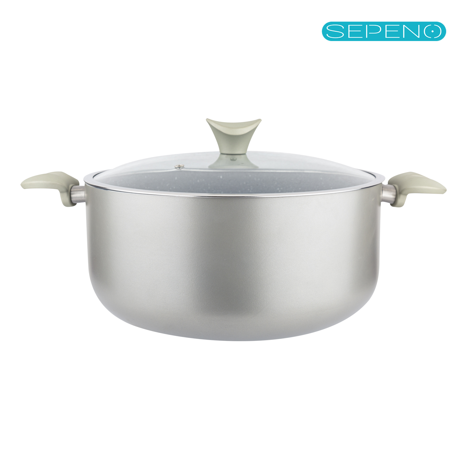 بدنه قابلمه لیدوما مدل الکترا از آلومینیوم فشرده ساخته شده که علاوه بر وزن مناسب، باعث انتقال سریع و یکنواخت حرارت میشود. این ویژگی کمک میکند تا غذا بهطور یکنواخت پخته شود و از سوختگی یا نیمپز شدن آن جلوگیری شود. پوشش داخلی گرانیتی نچسب، مانع از چسبیدن غذا به سطح ظرف شده و امکان پخت سالم با کمترین میزان روغن را فراهم میکند.