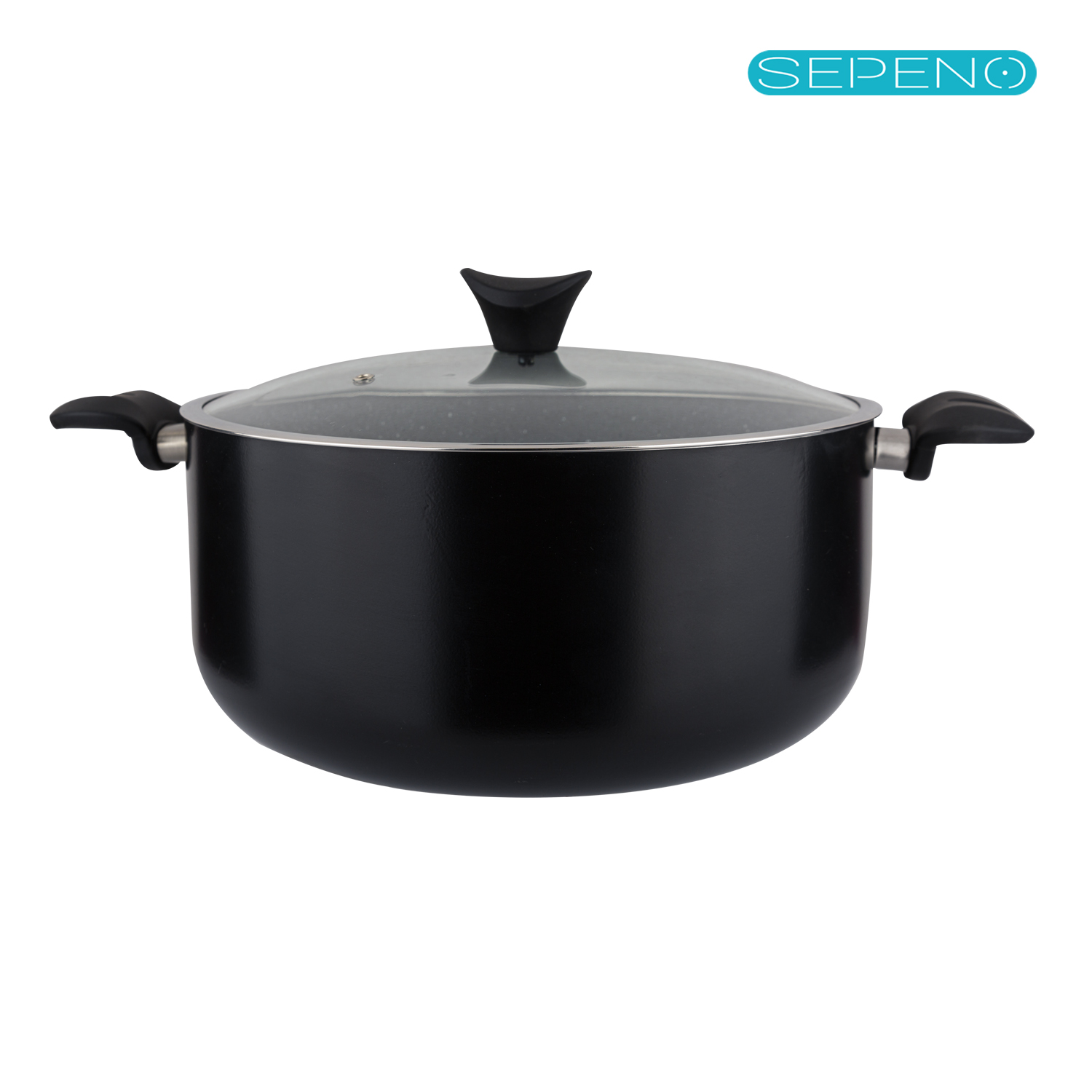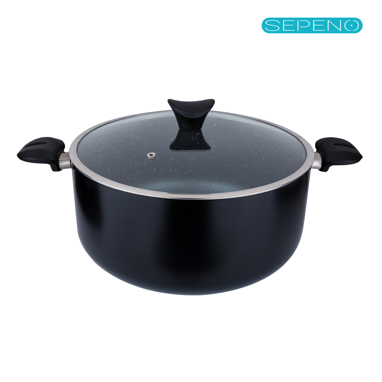 درب شیشهای مقاوم این قابلمه به شما امکان میدهد فرآیند پخت را بدون نیاز به برداشتن درب، مشاهده کنید. همچنین، دستگیرههای نسوز و مقاوم در برابر حرارت، جابجایی آن را آسان و ایمن کرده است.