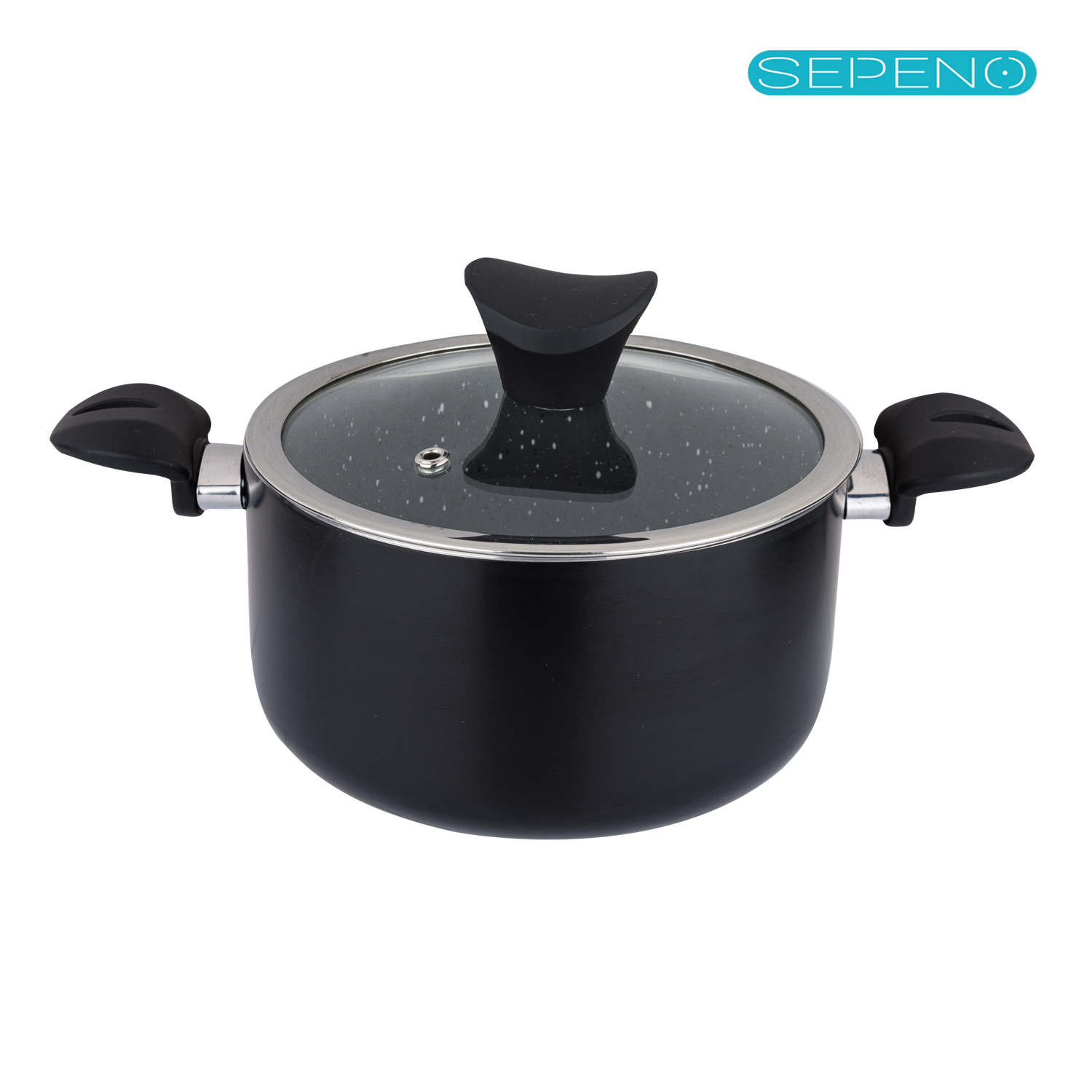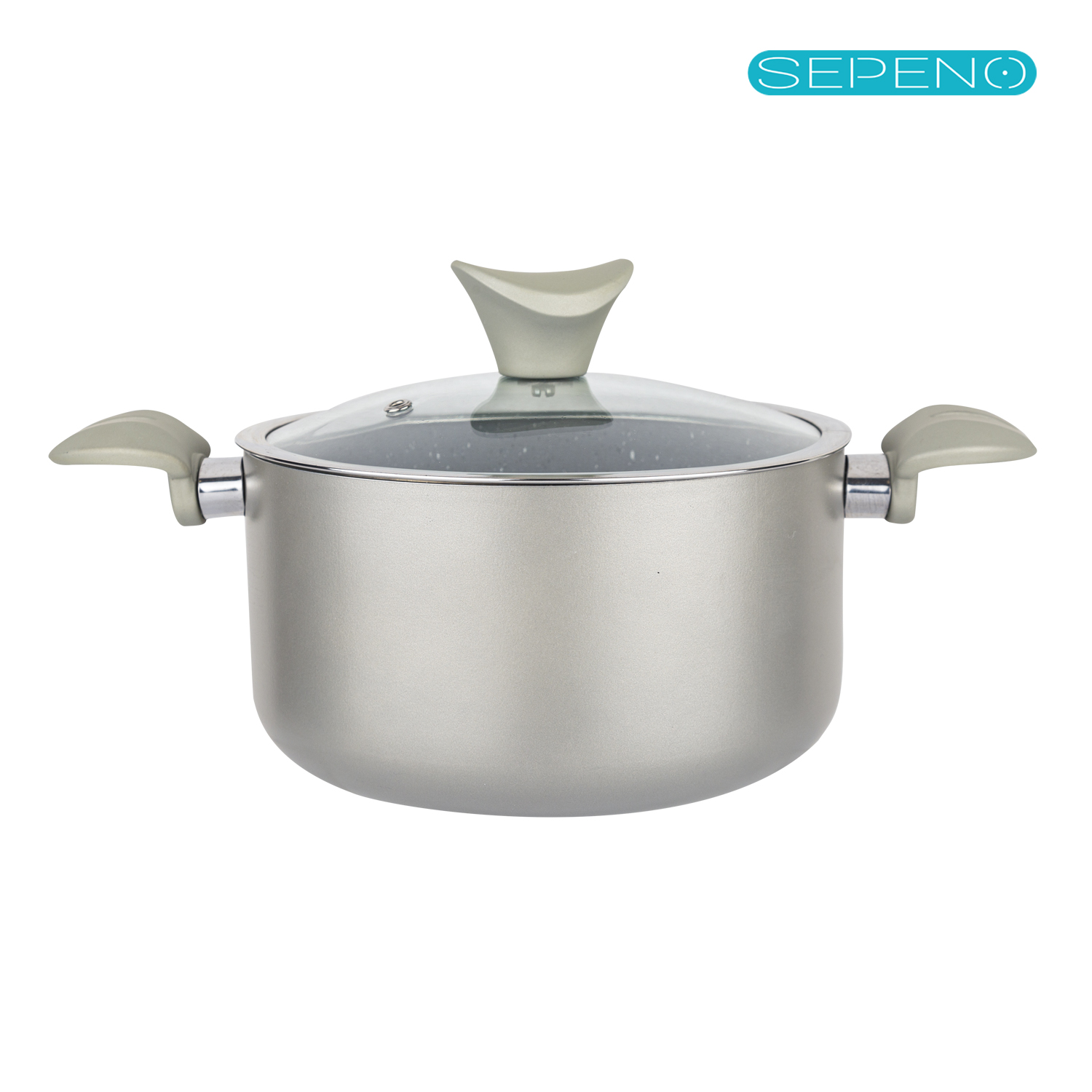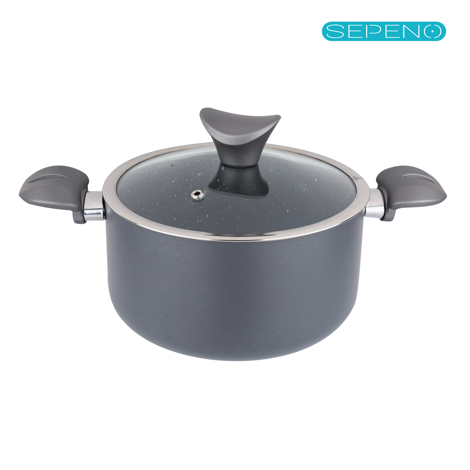 بدنه قابلمه لیدوما مدل الکترا از آلومینیوم فشرده ساخته شده که علاوه بر وزن مناسب، باعث انتقال سریع و یکنواخت حرارت میشود. این ویژگی کمک میکند تا غذا بهطور یکنواخت پخته شود و از سوختگی یا نیمپز شدن آن جلوگیری شود. پوشش داخلی گرانیتی نچسب، مانع از چسبیدن غذا به سطح ظرف شده و امکان پخت سالم با کمترین میزان روغن را فراهم میکند.