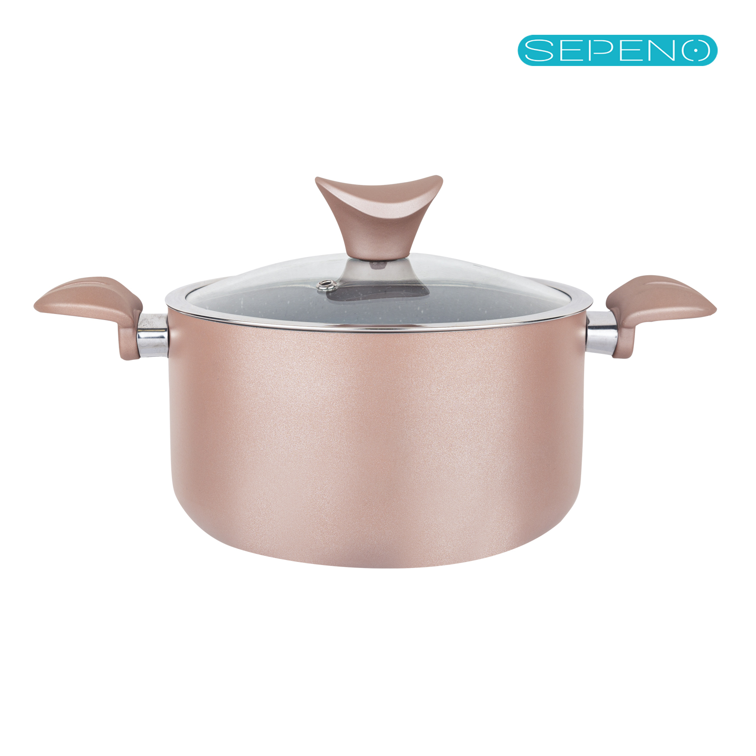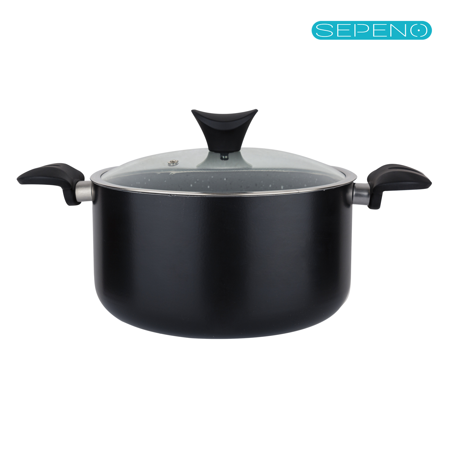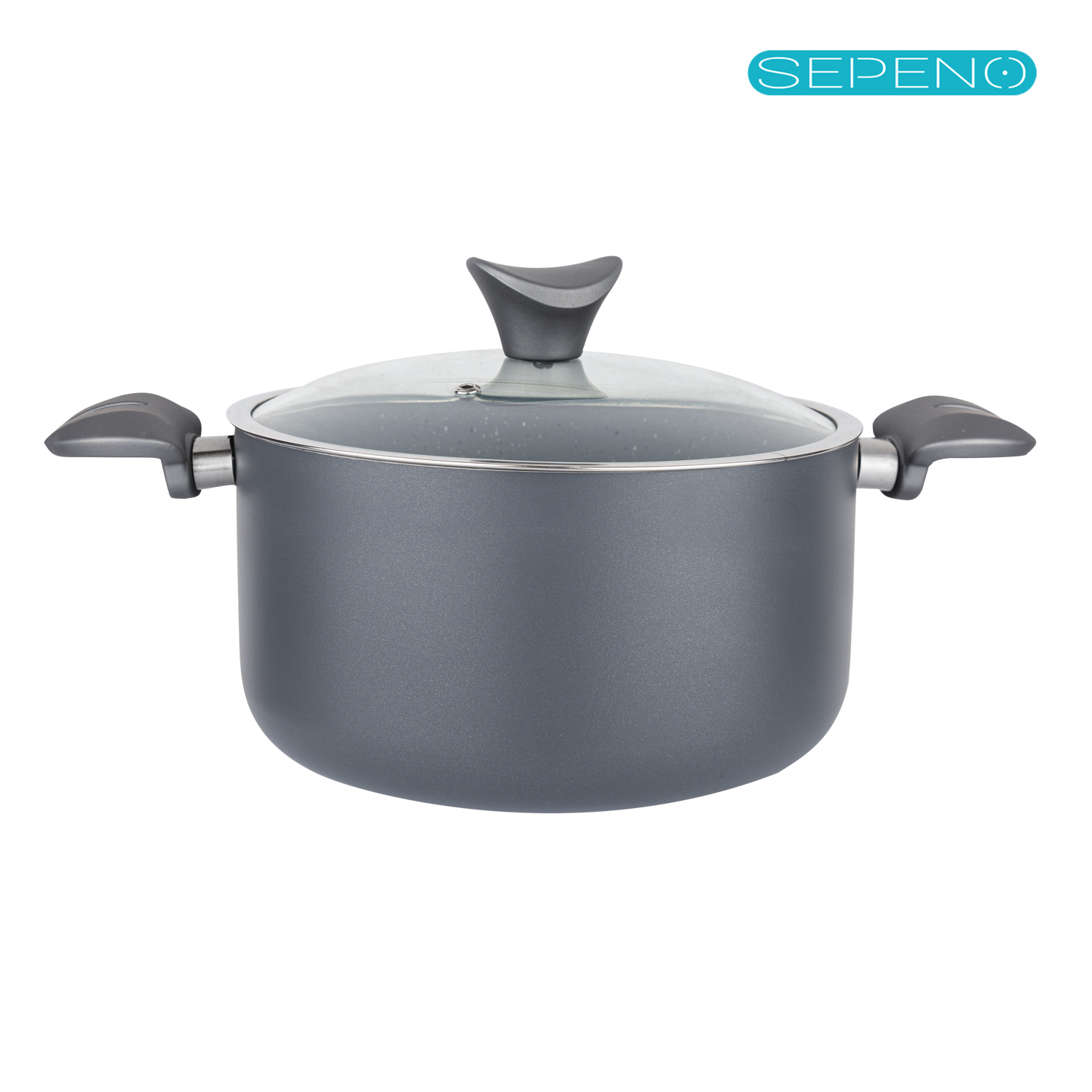بدنه قابلمه لیدوما مدل الکترا از آلومینیوم فشرده ساخته شده که علاوه بر وزن مناسب، باعث انتقال سریع و یکنواخت حرارت میشود. این ویژگی کمک میکند تا غذا بهطور یکنواخت پخته شود و از سوختگی یا نیمپز شدن آن جلوگیری شود. پوشش داخلی گرانیتی نچسب، مانع از چسبیدن غذا به سطح ظرف شده و امکان پخت سالم با کمترین میزان روغن را فراهم میکند.